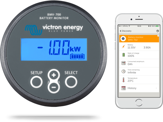 The BMV-700 is our newest high precision battery monitor. The essential function of a battery monitor is to calculate ampere hours consumed and the state of charge of a battery. Ampere hours consumed are calculated by integrating the current flowing in or out of the battery.