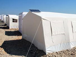 Malatya`ya gelen mevsimlik tarım işçilerinin kullanımı için ve her birinin içinde ayrı tuvalet ve lavabosu bulunan, güneş enerjili, 500 kişilik çadır kent hazırlandı.