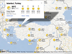 Belirli bir şehir için hava durumunu gösteren ikona tıkladığınız zaman nem, rüzgar koşulları gibi ayrıntılı verilerin yer aldığı dört günlük hava tahminine ulaşabileceğiniz pencere açılıyor. (sosyal medya)