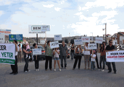 Kamu-Sen Başkanı Mehmet Özkardaş, Güç-Sen Başkanı Memduh Çeto ve Yeşil Barış Hareketi Başkanı Doğan Sahir’in de katılarak destek verdikleri eylemde, “Ne Termik, Ne Nükleer; Güneş ve Rüzgar Bize Yeter”, “Ölüm Solumak İstemiyoruz”, “Hiç Bir Faaliyet Sağlıktan Önemli Olamaz”, “Temiz Çevre, Çağdaş Ülke”, “Cilt Kanseri, Mide Kanseri, Kolon Kanseri, Gırtlak Kanseri Olmak İstemiyoruz” yazılı ifadeler dikkat çekti.